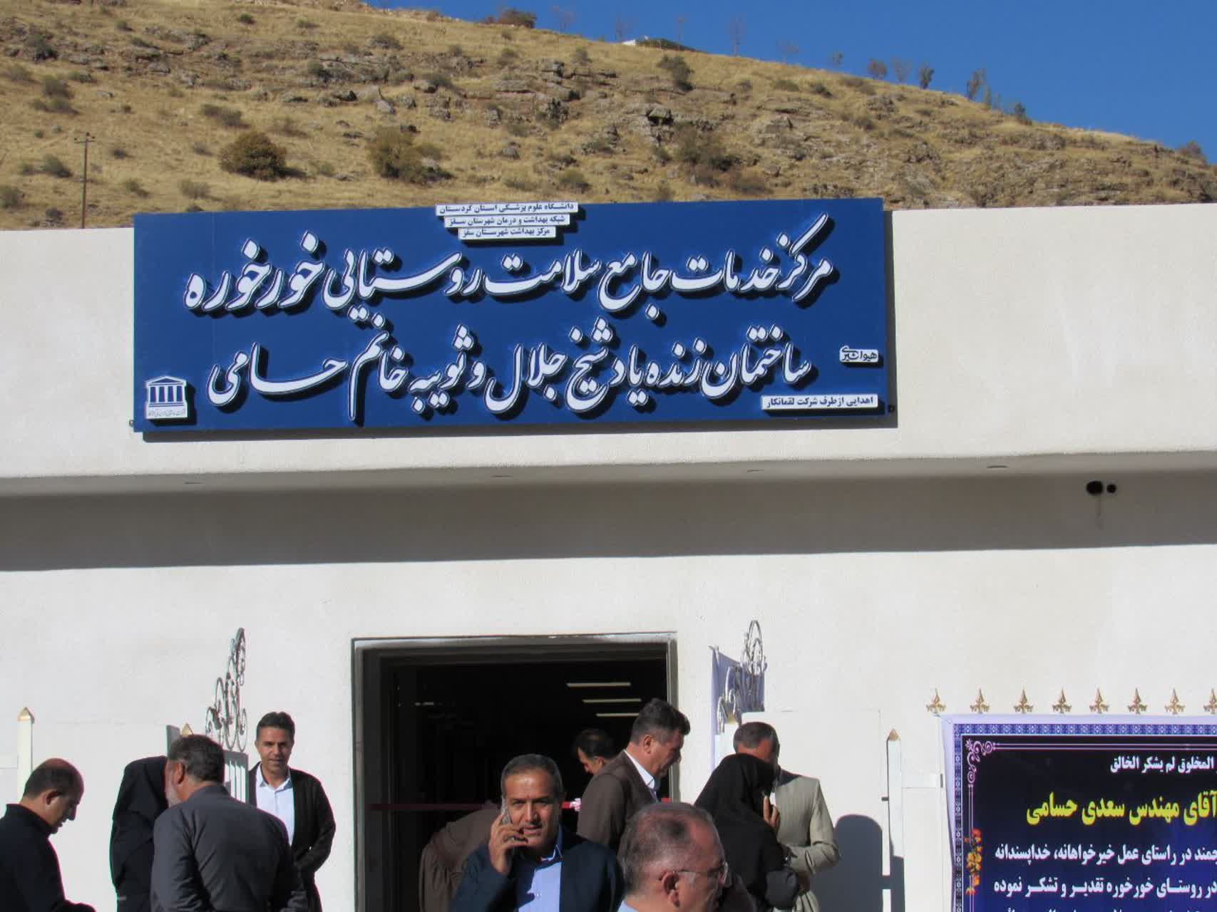 🔹 با حضور رئیس دانشگاه علوم پزشکی کردستان، معاون استاندار و فرماندار ویژه شهرستان سقز، معاونین درمان و بهداشت دانشگاه، مهندس حسامی خیر بزرگوار ،رئیس دفتر نماینده مردم سقز و بانه در مجلس شورای اسلامی، معاون عمرانی فرمانداری، بخشداران زیویه و سنته، مدیر شبکه بهداشت و درمان سقز، رئیس مرکز بهداشت شهرستان، مدیر حراست شبکه و جمعی از مدیران و مسئولین محلی، مرکز جامع سلامت روستای خورهخوره در تاریخ ۷ آبان ۱۴۰۴ به بهرهبرداری رسید.
