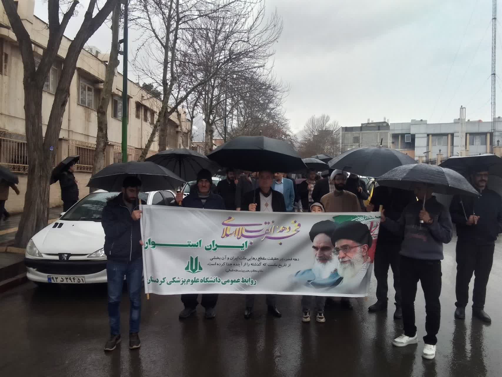 به گزارش روابط عمومی دانشگاه علوم پزشکی کردستان، مسئولین، اساتید، کارکنان، دانشجویان و کادر دانشگاه صبح امروز با حضور در مسیرهای تعیینشده راهپیمایی در سنندج و سایر شهرهای استان، در مراسم بزرگداشت سالروز پیروزی انقلاب اسلامی شرکت کردند.